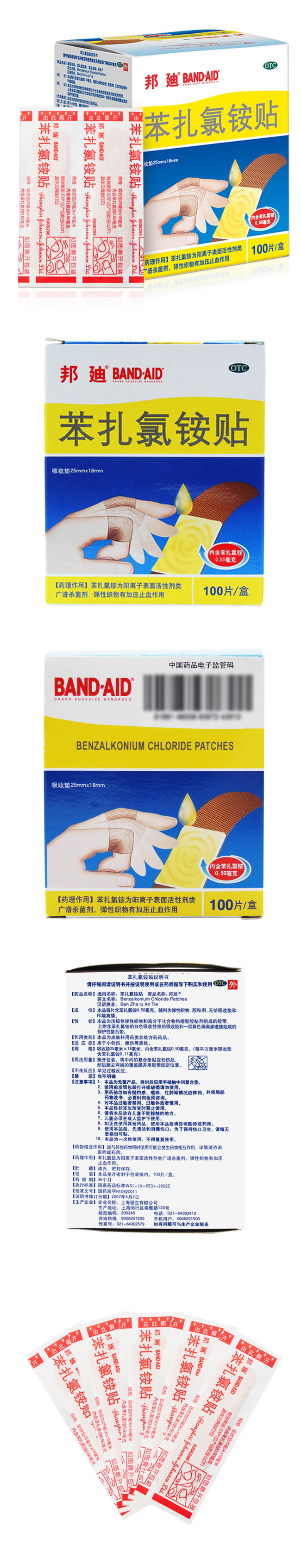 邦廸苯扎氯銨貼創口貼創可貼100片/盒 自營