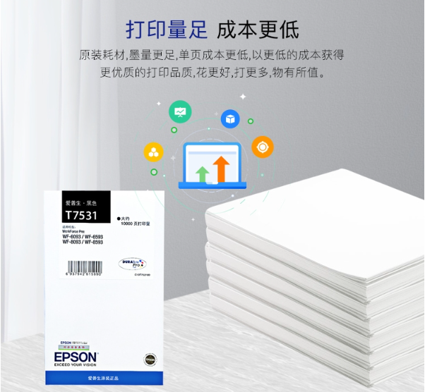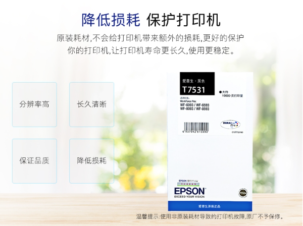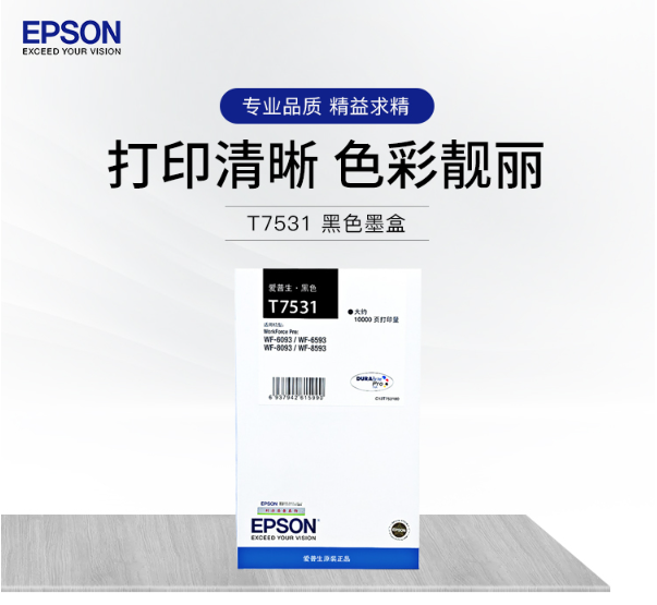 愛普生(EPSON) T7531 黑色墨盒(適用于WF-6093/6593/8093/8593) 自營