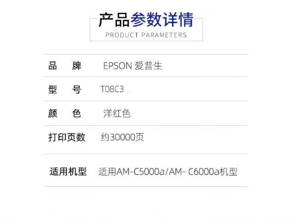 愛普生(EPSON)T08C3 洋紅色色墨盒(適用AM-C5000a/AM-C6000a復合機)約30000頁 自營