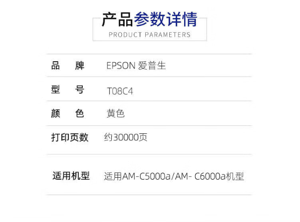 愛普生(EPSON)T08C4 黃色墨盒(適用AM-C5000a/AM-C6000a復合機)約30000頁 自營