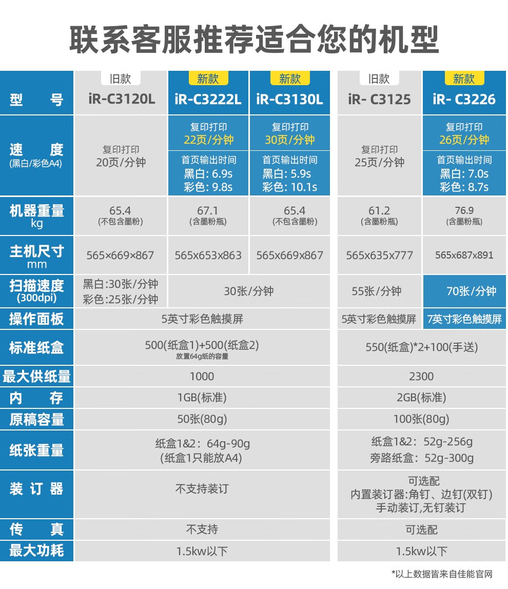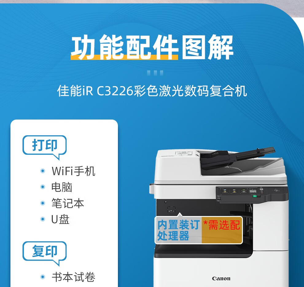 佳能復合機C3222L/3120/3125/3226無線A3彩色激光復印機大型商用辦公掃描一體打印機 升級版C3222L含輸稿器+原裝工作臺【新品】 自營