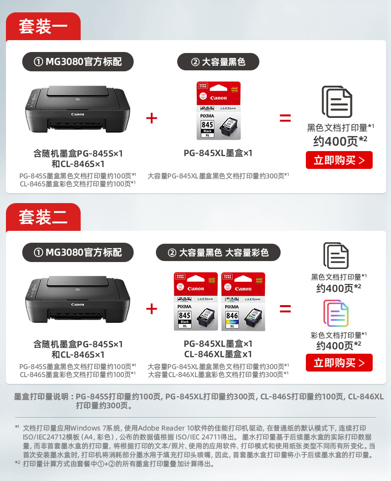佳能(Canon)MG3080無線家用彩色噴墨多功能一體機(打印/復印/掃描 學生打印/家庭打印/照片打印 WIFI) 自營