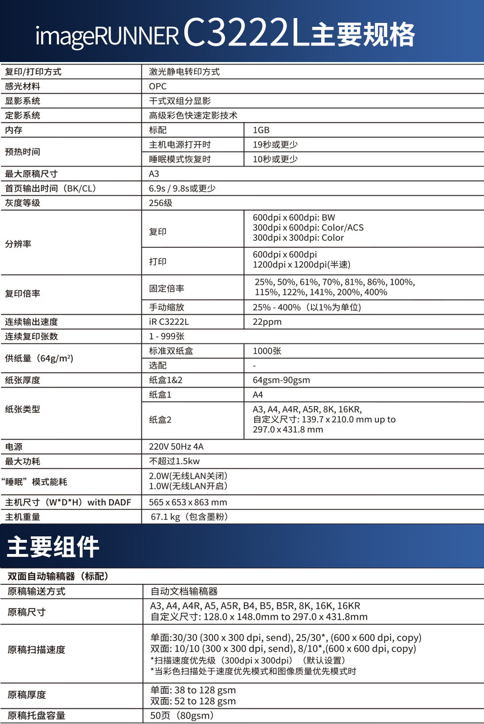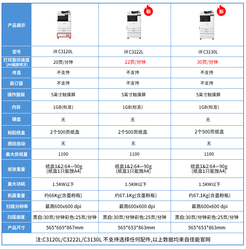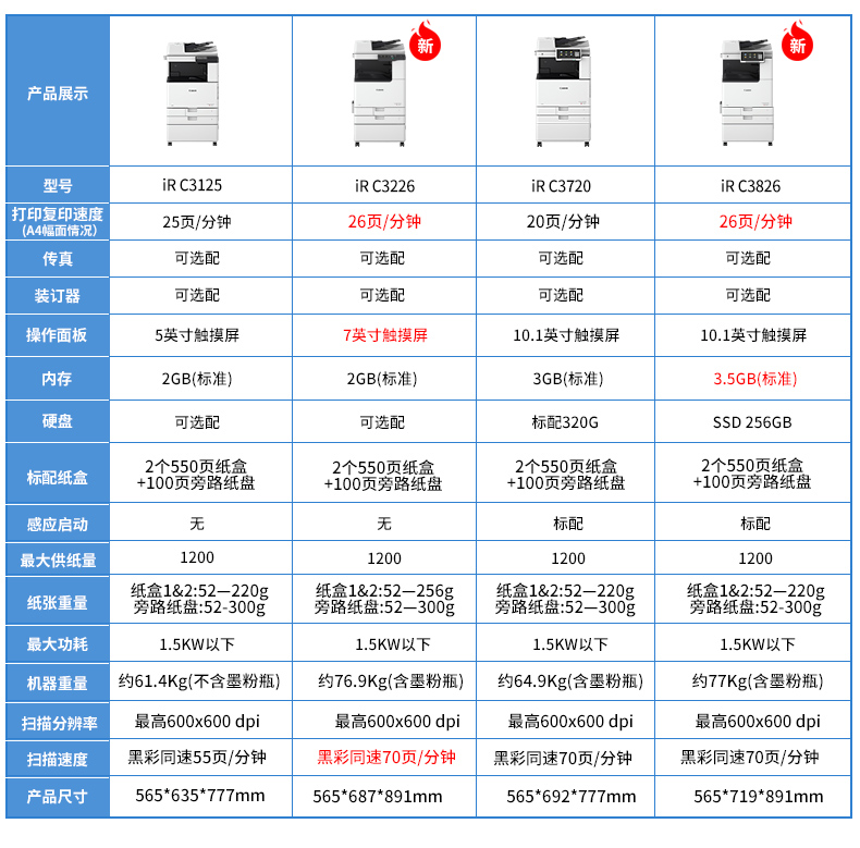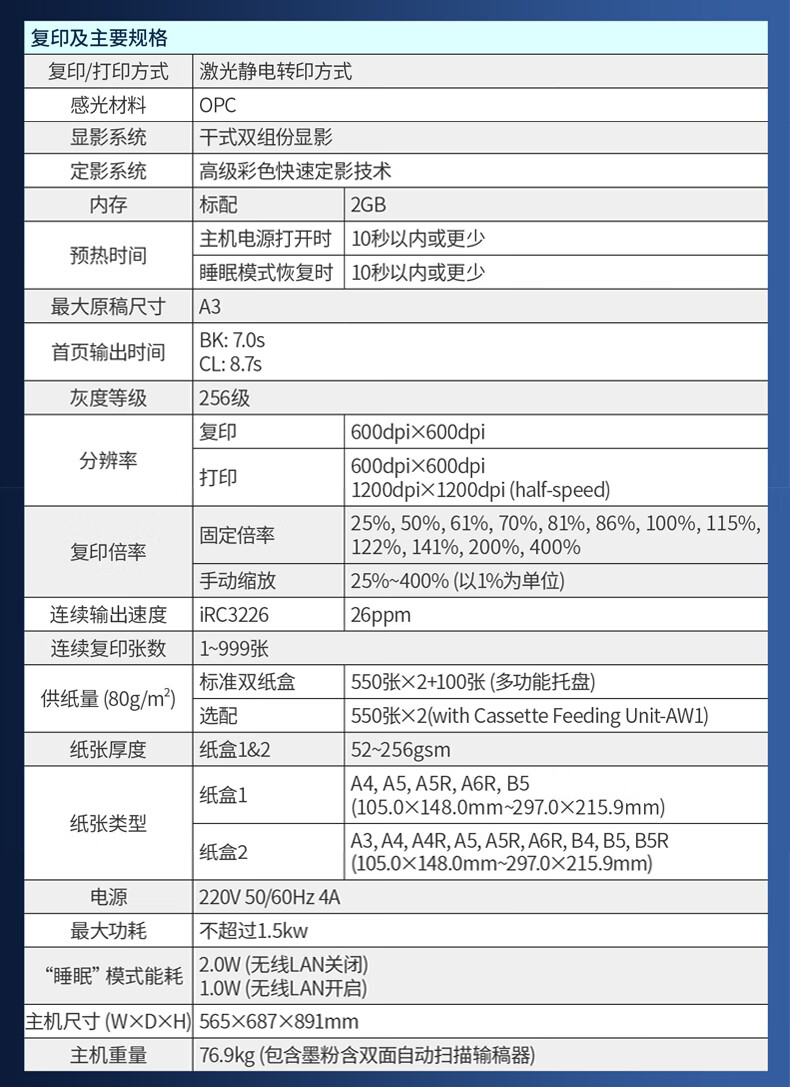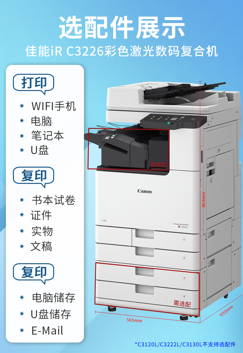 佳能復印機C3120/3222L/3125/3226彩色激光A3打印機雙面大型辦公無線商用掃描復合機 新品C3226【主機+輸稿器+原裝工作臺】 自營
