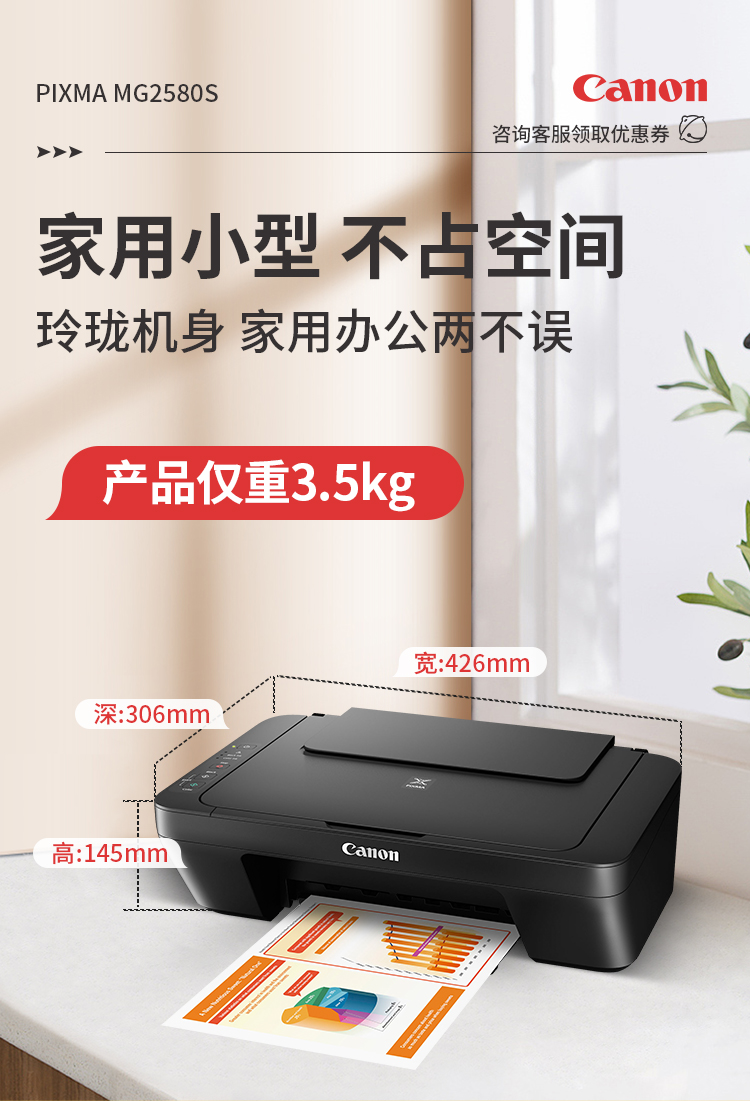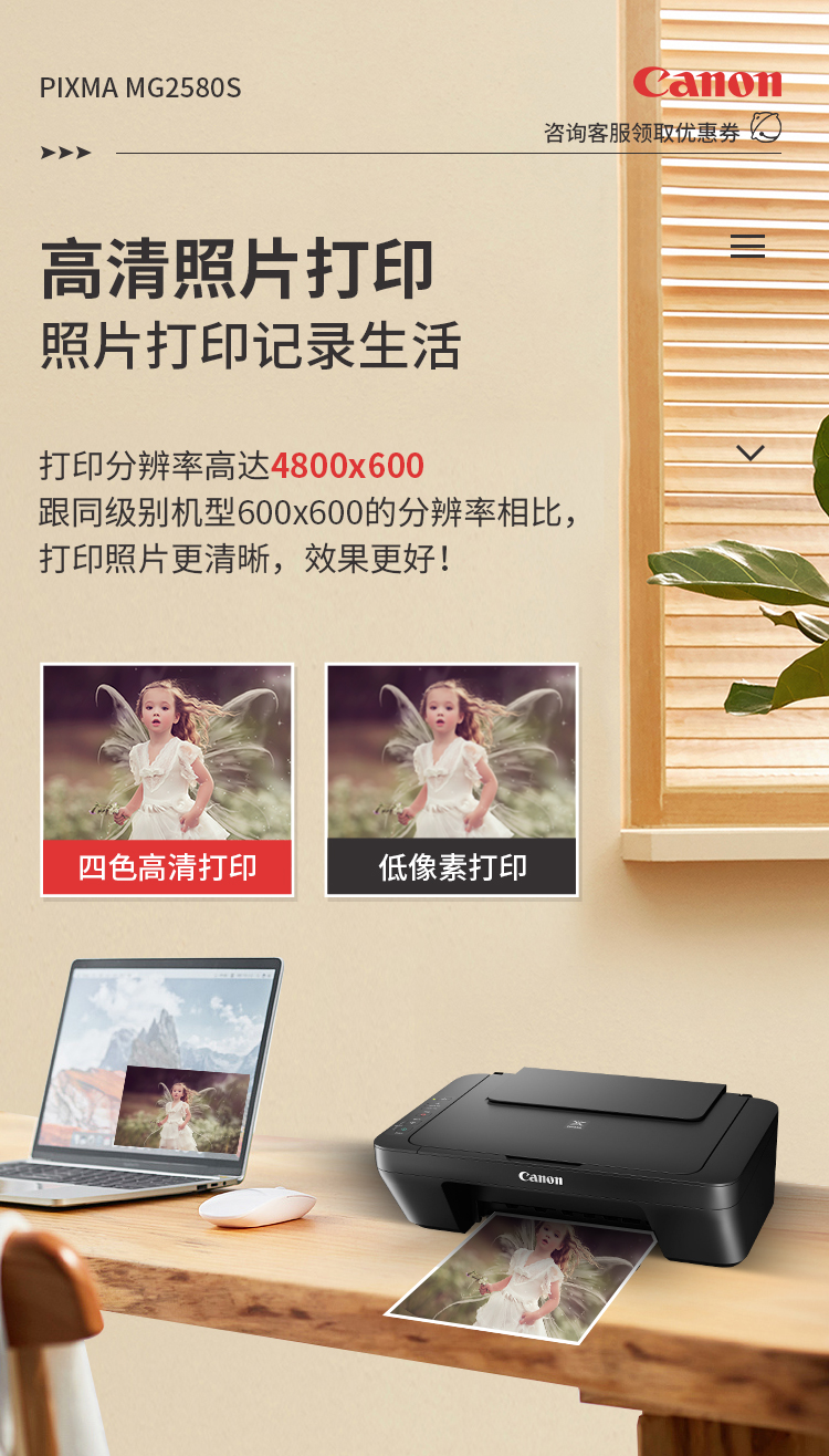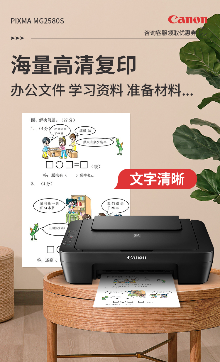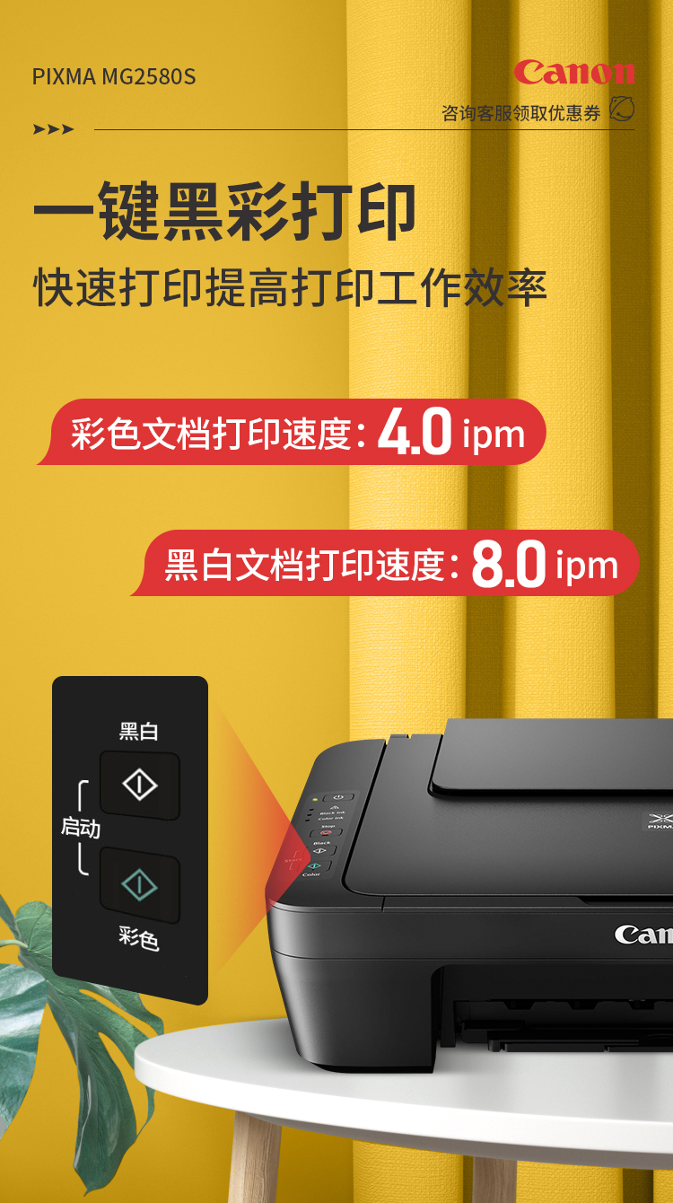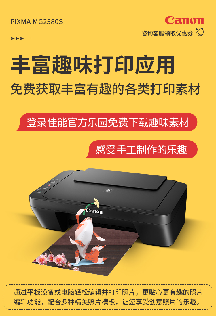 佳能(Canon)MG2580S打印機一體機噴墨彩色照片打印復印掃描家用辦公學生連供加墨 套餐四 MG2580S連供加墨+4瓶墨水+升級無線 自營