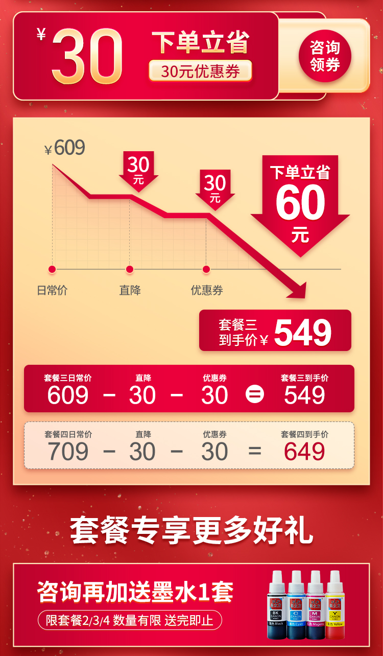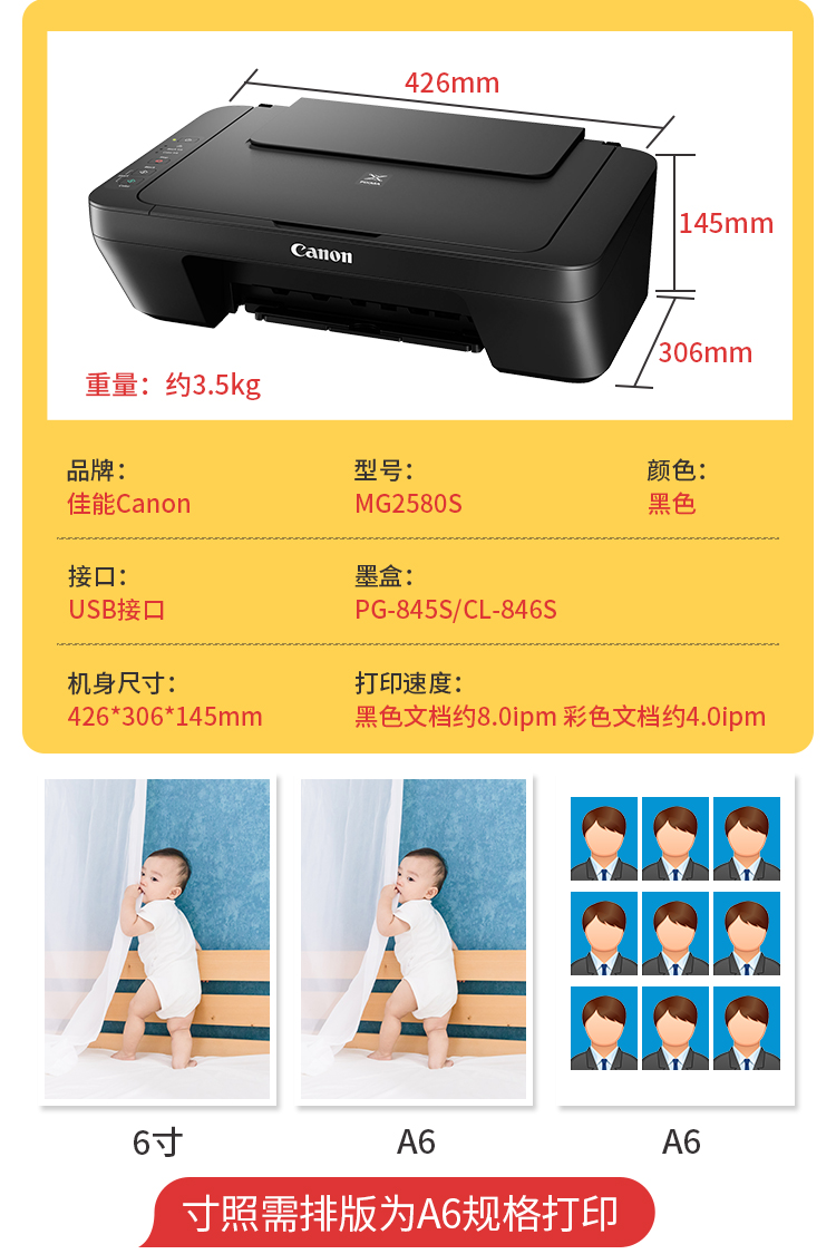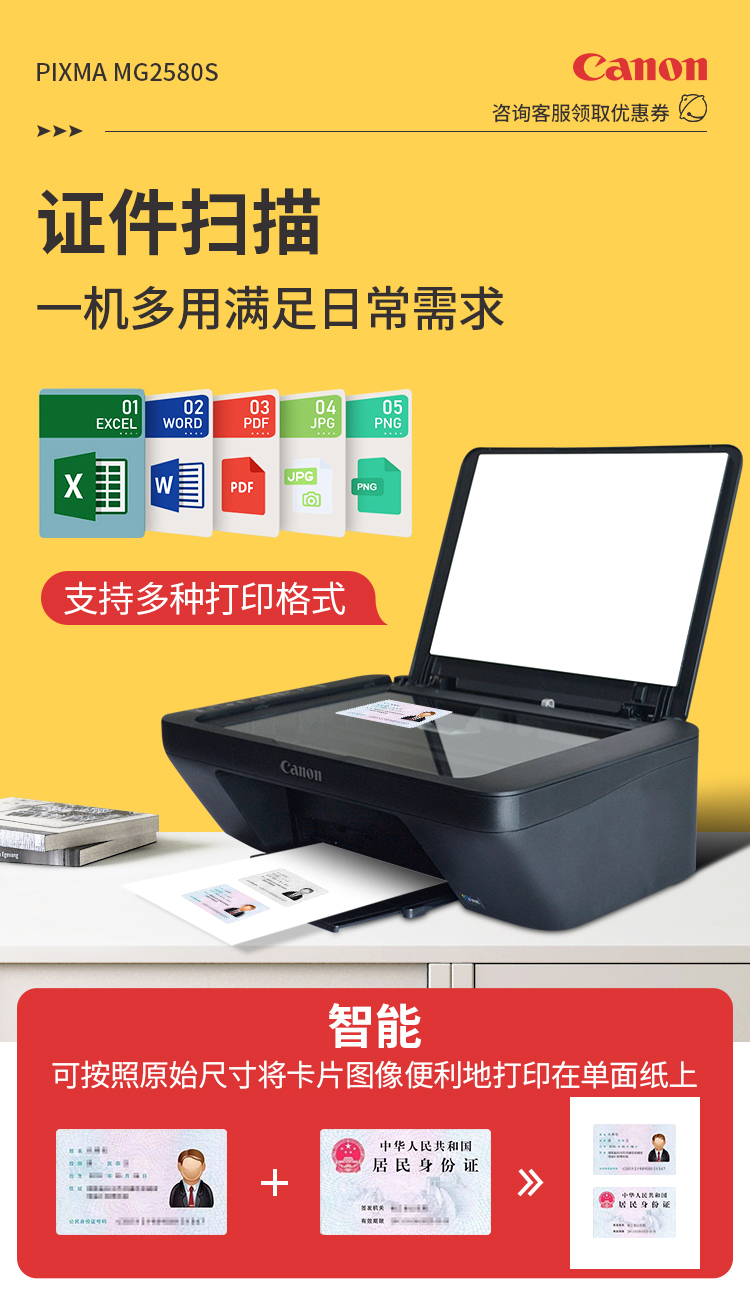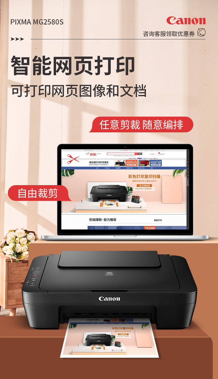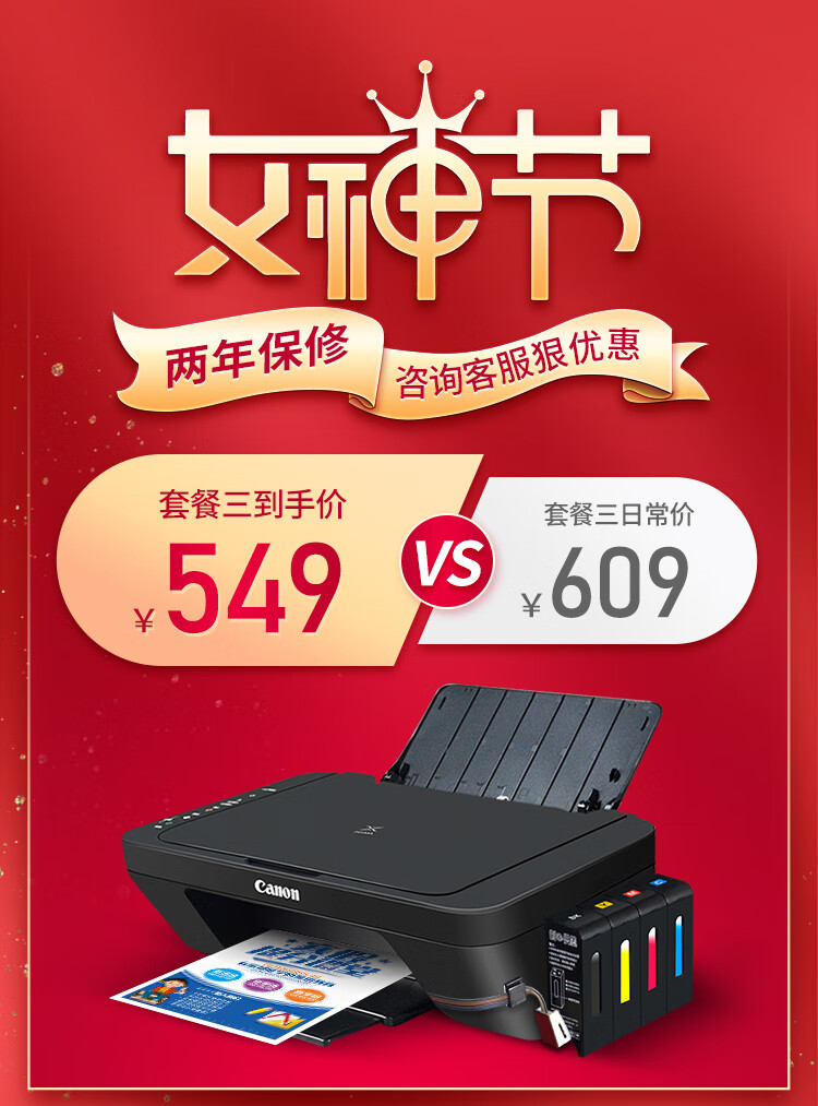 佳能(Canon)MG2580S打印機一體機噴墨彩色照片打印復印掃描家用辦公學生連供加墨 套餐四 MG2580S連供加墨+4瓶墨水+升級無線 自營