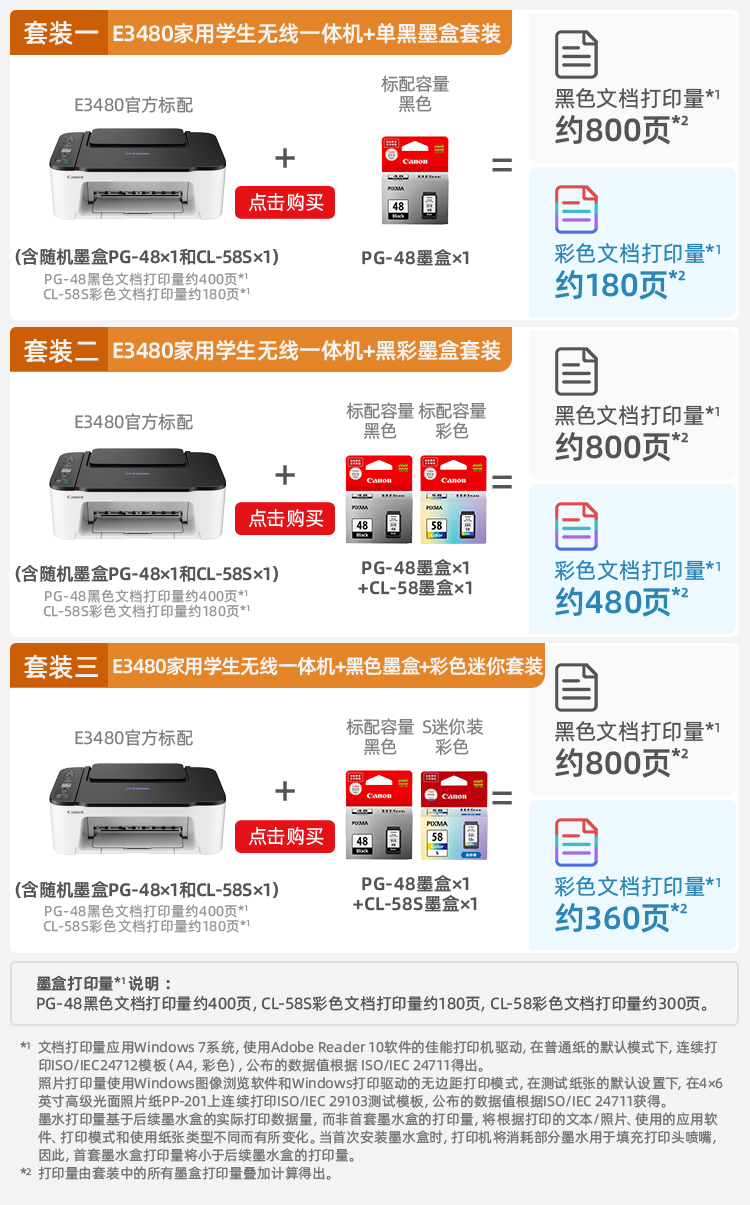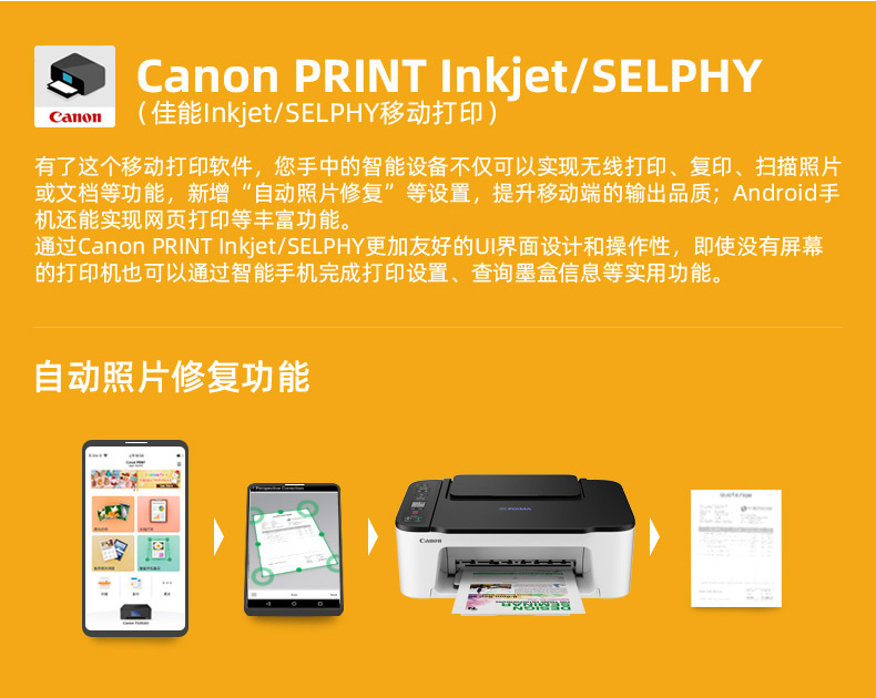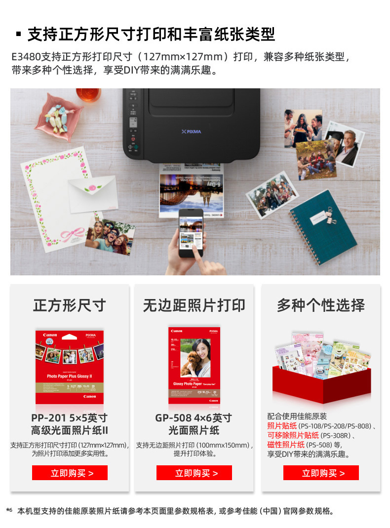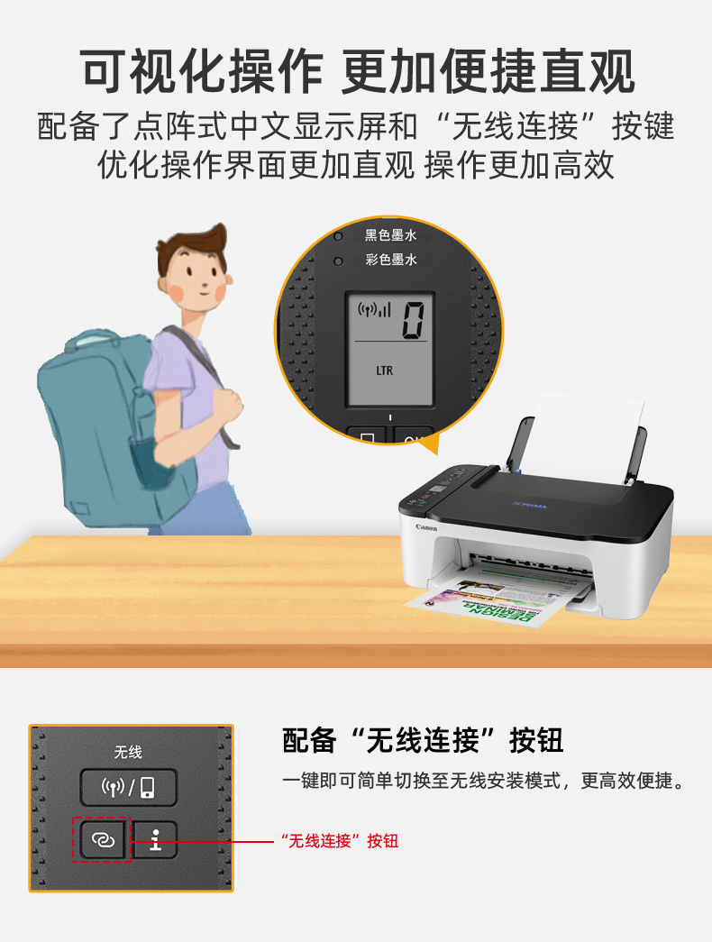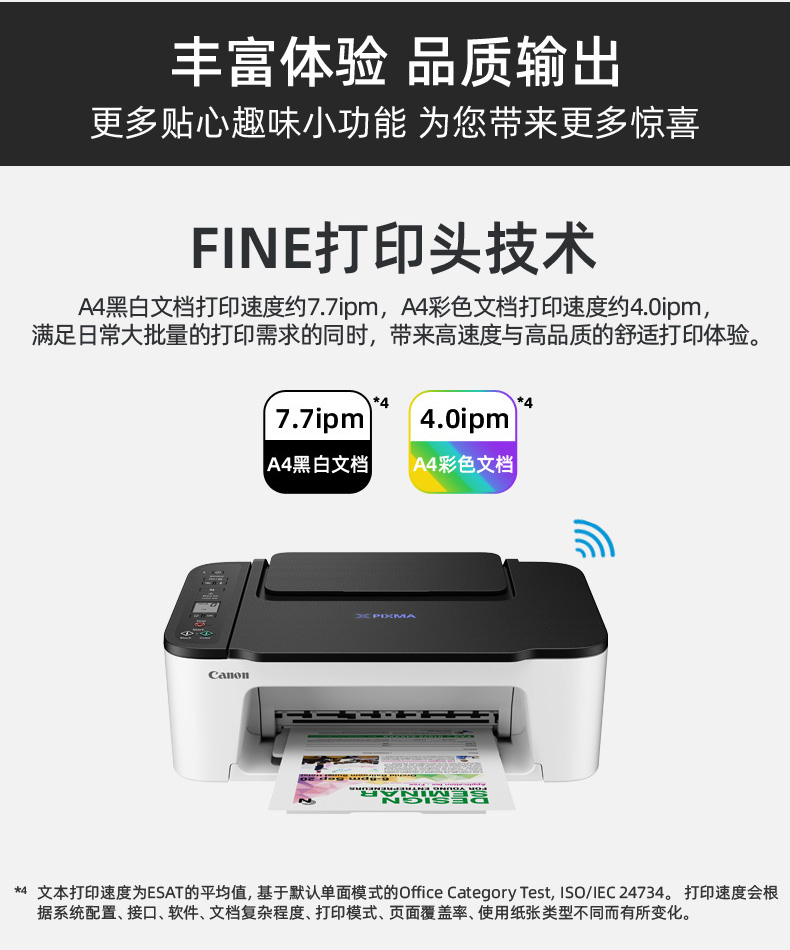 佳能(Canon)E3480 無線學(xué)生家用彩色噴墨多功能一體機(jī)(打印/復(fù)印/掃描 WIFI/云打印 學(xué)生/作業(yè)/照片打印) 自營
