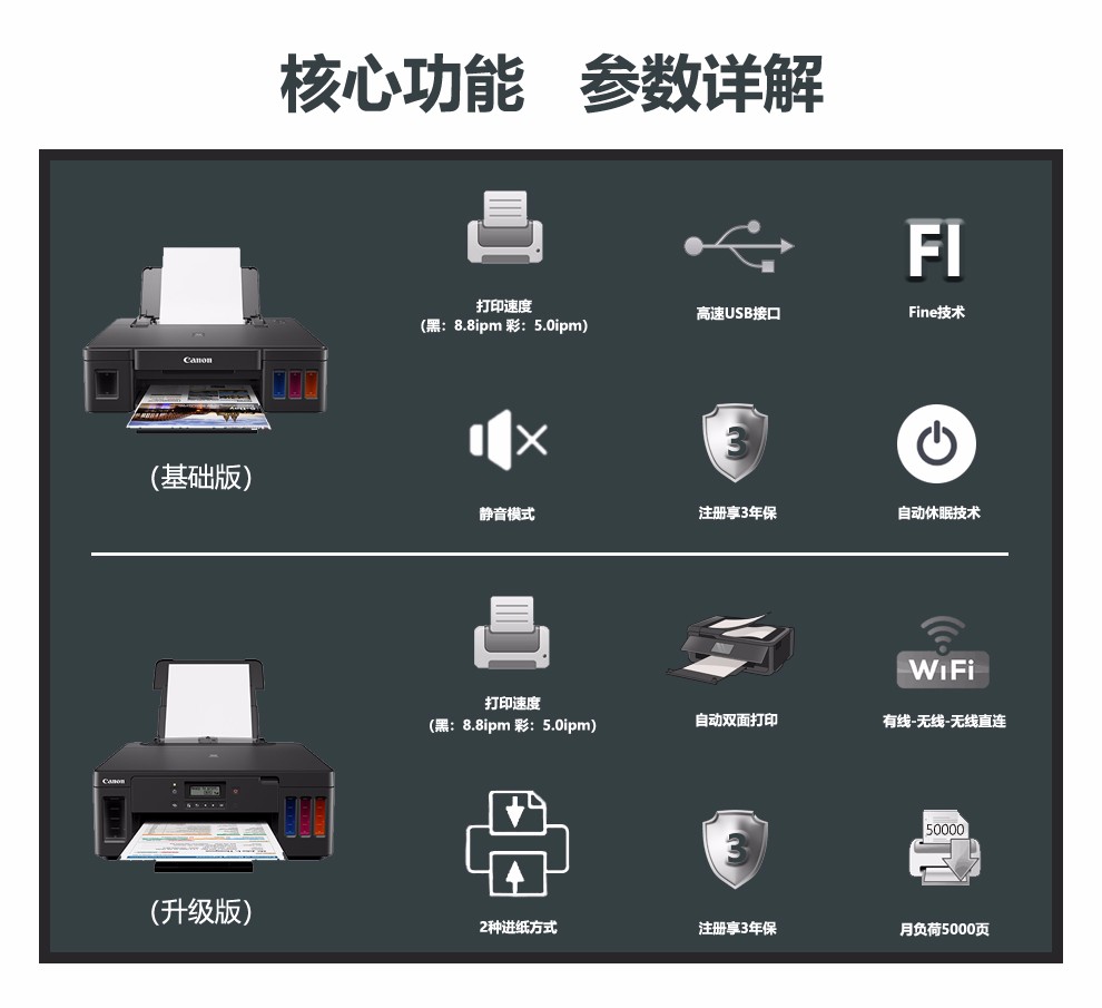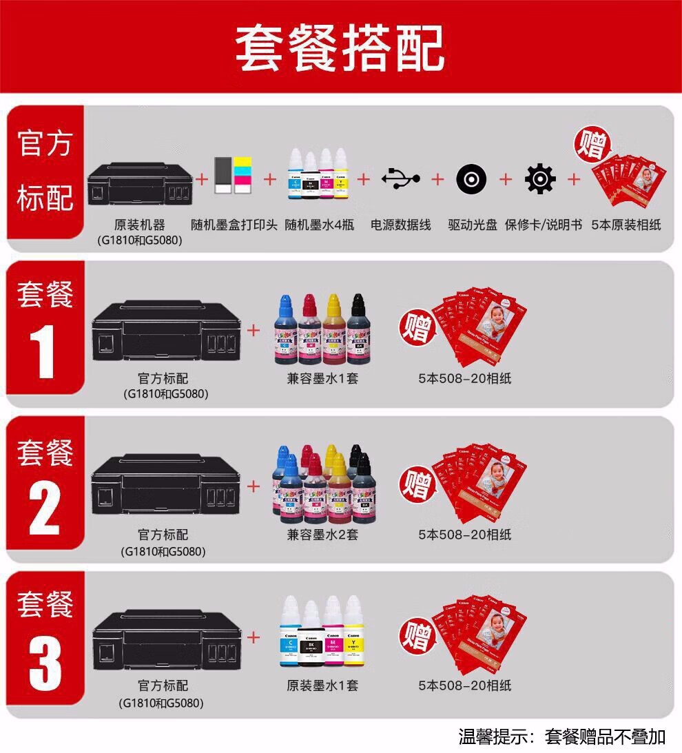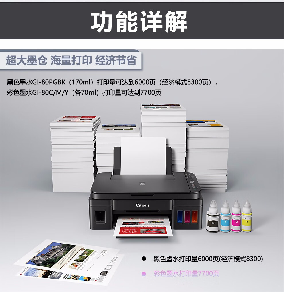 佳能(Canon)G1810/G5080 家用加墨式連供高容量彩色噴墨家庭作業(yè)照片辦公打印機 G1810 有線USB彩色單功能家庭作業(yè)打印 官方標(biāo)配(內(nèi)含佳能隨機墨水4瓶+隨機配件) 自營