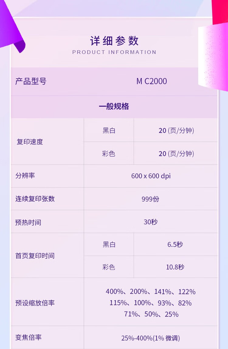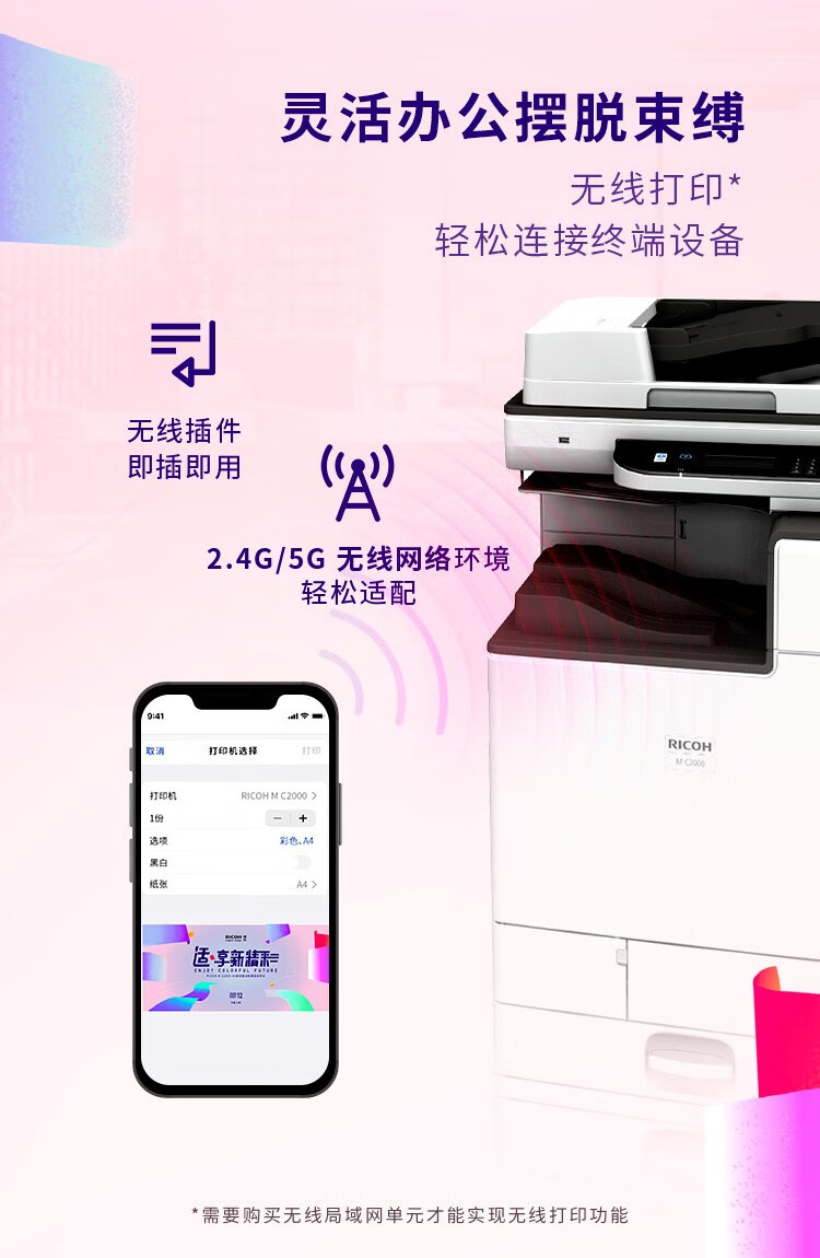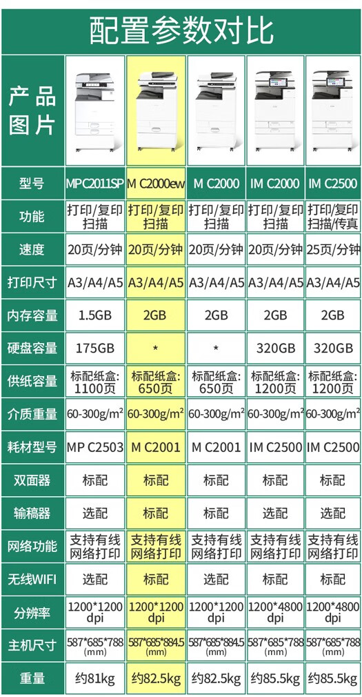 理光MP MC2000 2000ew 2500打印機復印機A3彩色復合機掃描一體機大型商用辦公彩機 MC2000ew 單紙盒雙面輸稿器無線 自營